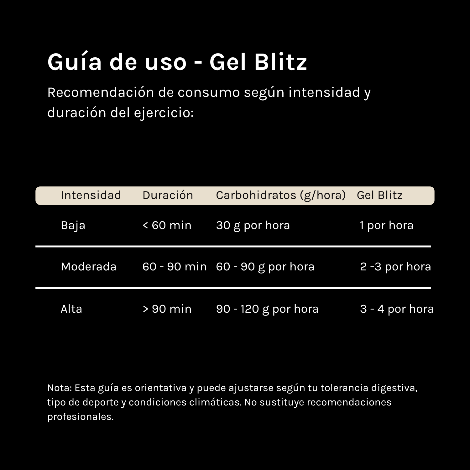 Entre 5 y 15 minutos, gracias a la rápida absorción de carbohidratos en el ratio optimizado de 1:0,8 de maltodextrina a fructosa.