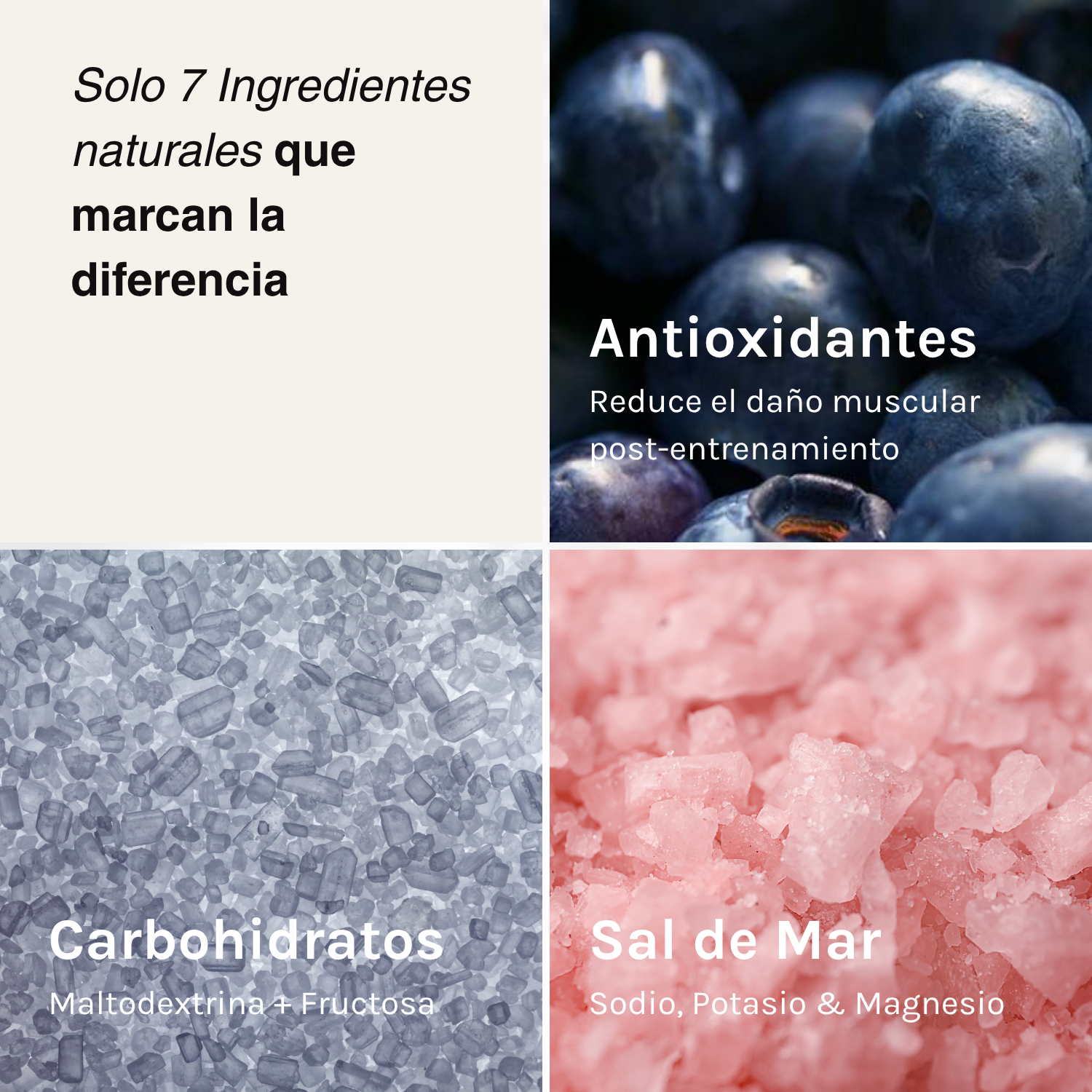 Rica en electrolitos esenciales como sodio, potasio y magnesio, cruciales para el equilibrio de líquidos y la función muscular.